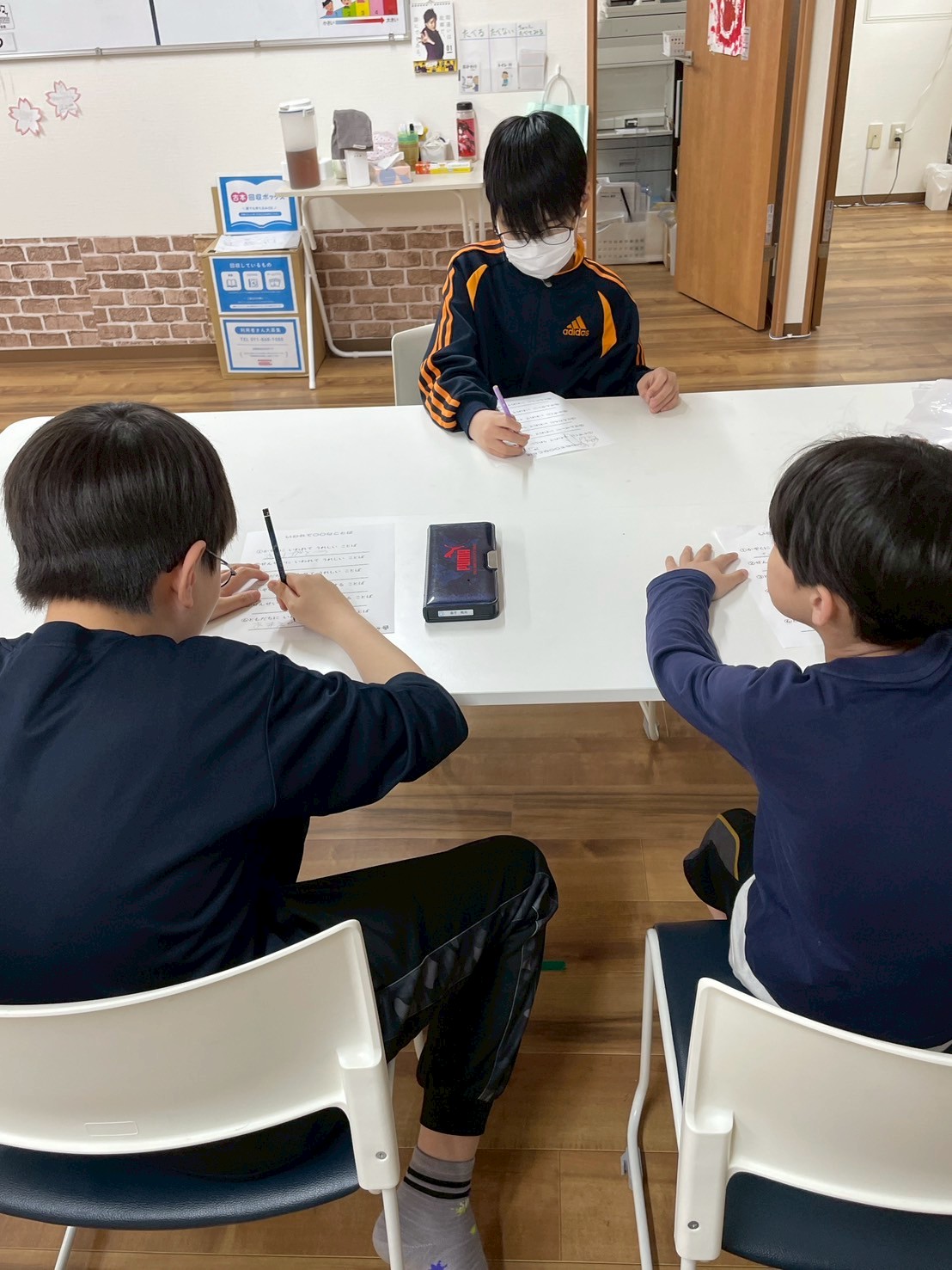 この日、中学生組は、みんなが活動しているときは、机の時間でした!