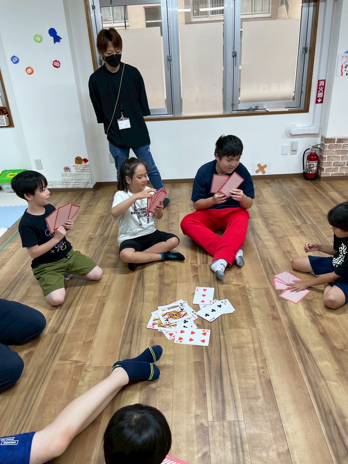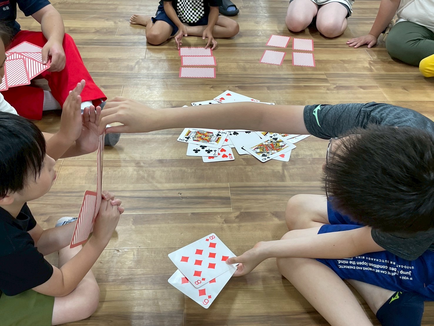 他の子に手札が見えないように、床に置いたりと工夫をしている子もいました!