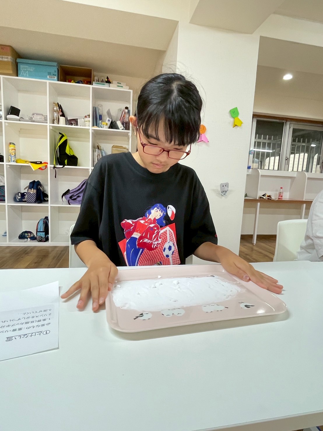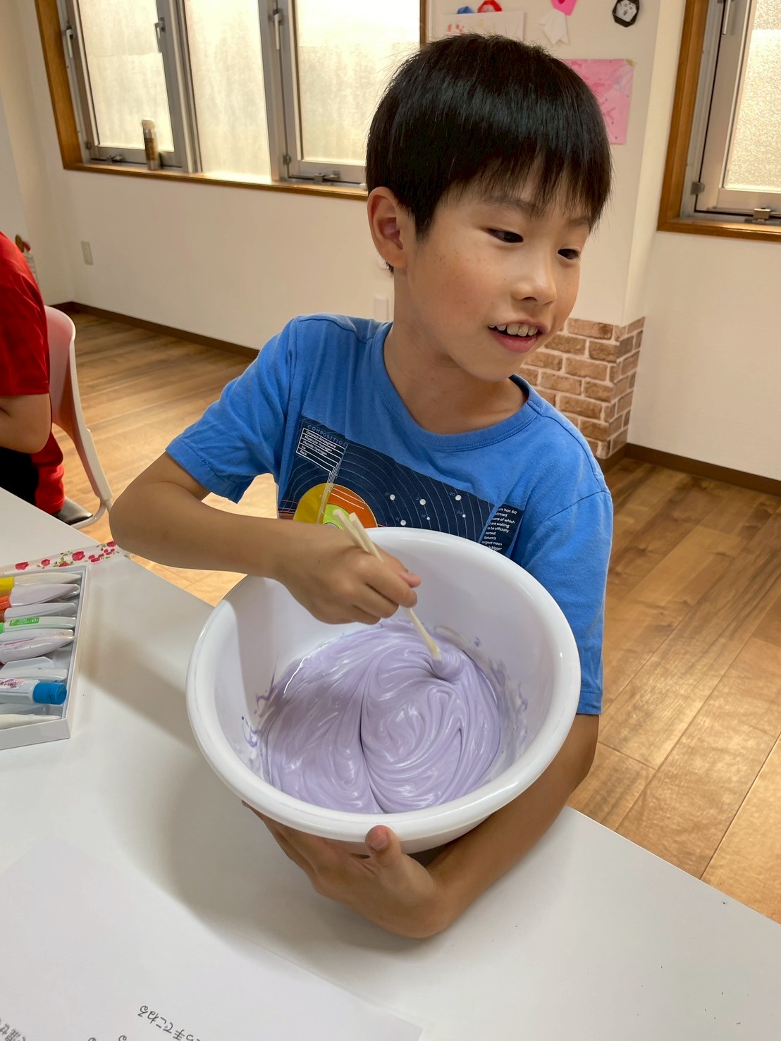いつものべたべたスライムとは違い、ボンドやシェービングフォームを入れることで、