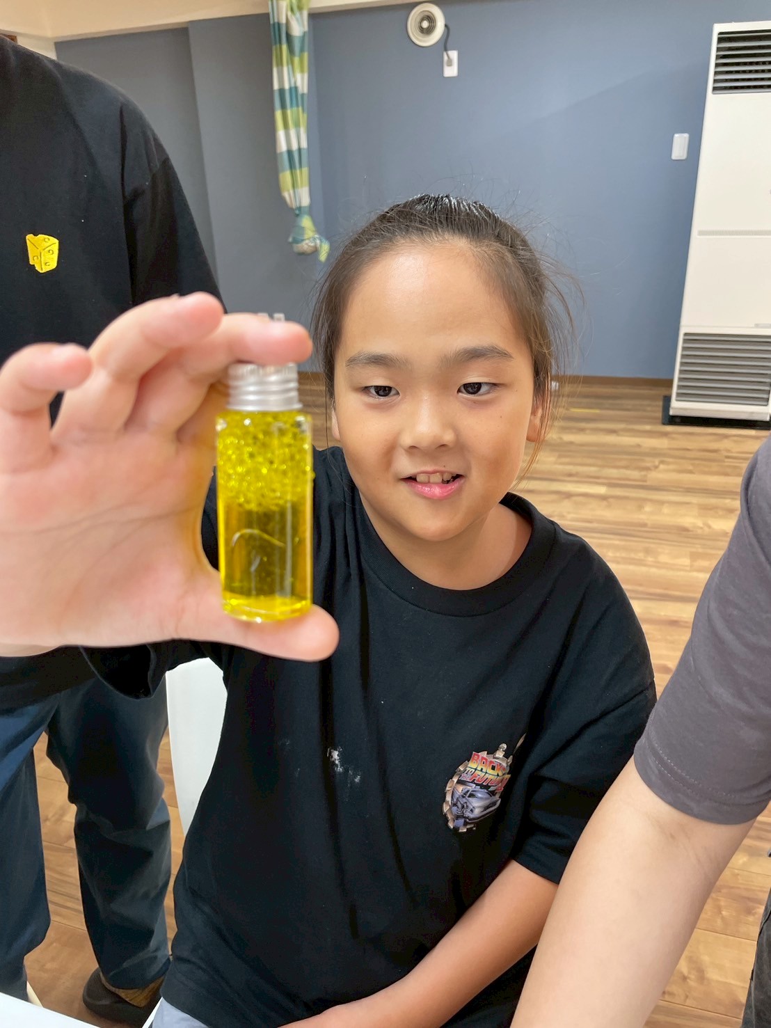 キラキラパウダーもいれて、きれいなオイルウォーターができました!