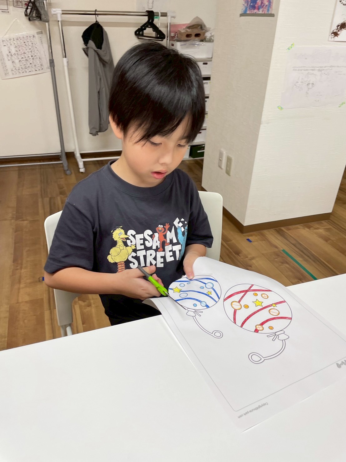 ポスターのヨーヨーの塗り絵は、グラデーションで塗っている子もいれば、