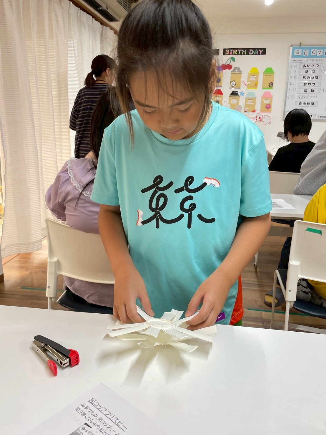紙コップにを8等分に切ったものを、2つ合わせて、ホッチキスで止めると、タコのようなフリスビーができます!