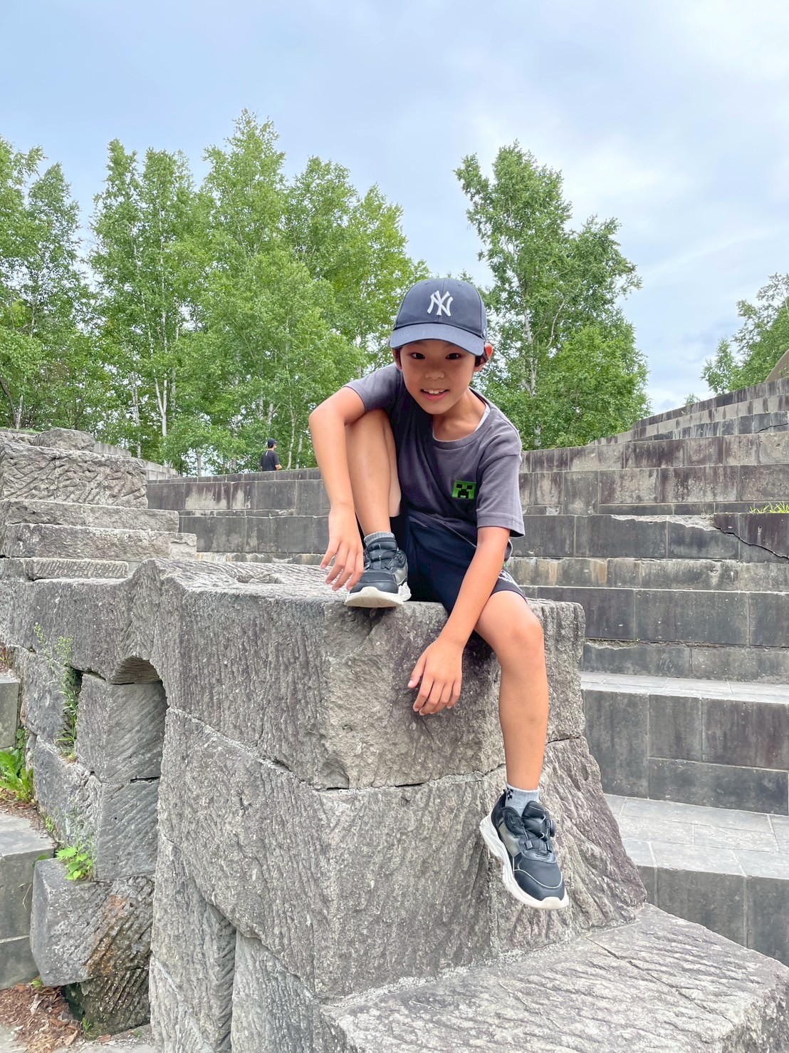 石の採掘場でもあったこの公園には水遊びコーナーもありますが、今年は主に石の広場で遊ぶことにしました!