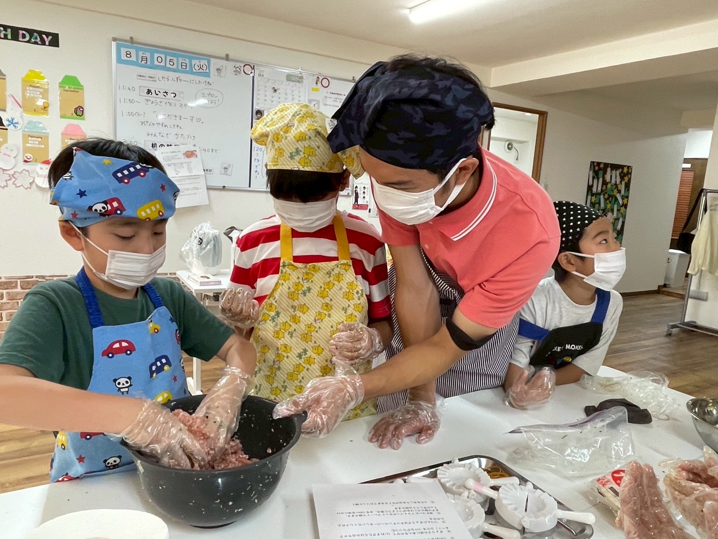 たまみずきでは久しぶりの餃子作りになりますが、お友だちも増えたので、今日はみんなで360個、餃子を作ります!