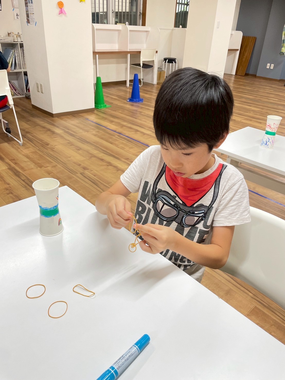 輪ゴムをつけるところは少し難しかったですが、お手伝いしながら、完成させました!