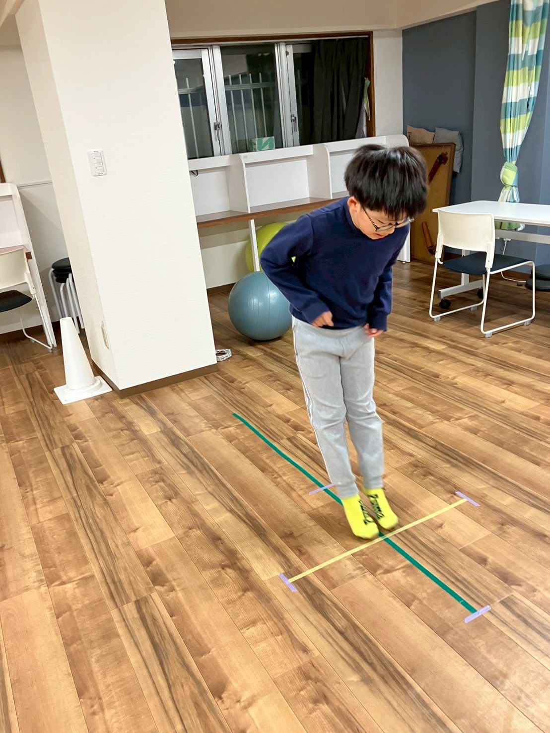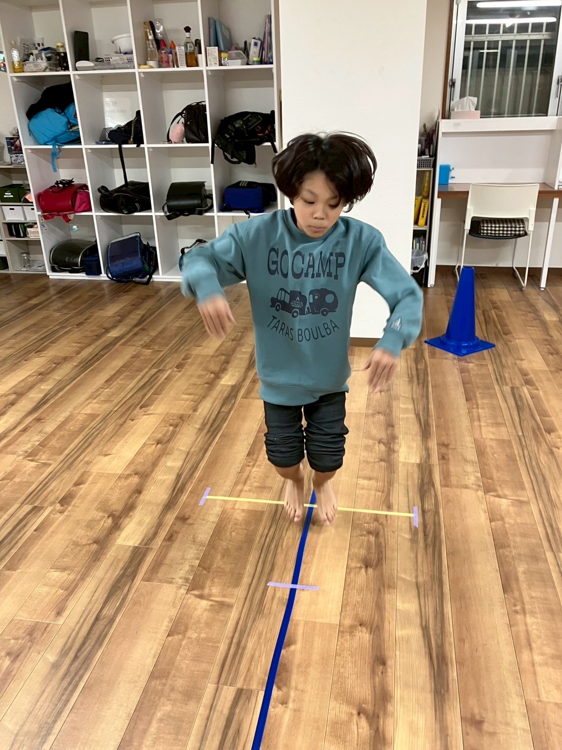 1週目は、職員が「前・後ろ・右・左」の合図を出し、その合図に合わせてジャンプで前後左右に移動しました👣