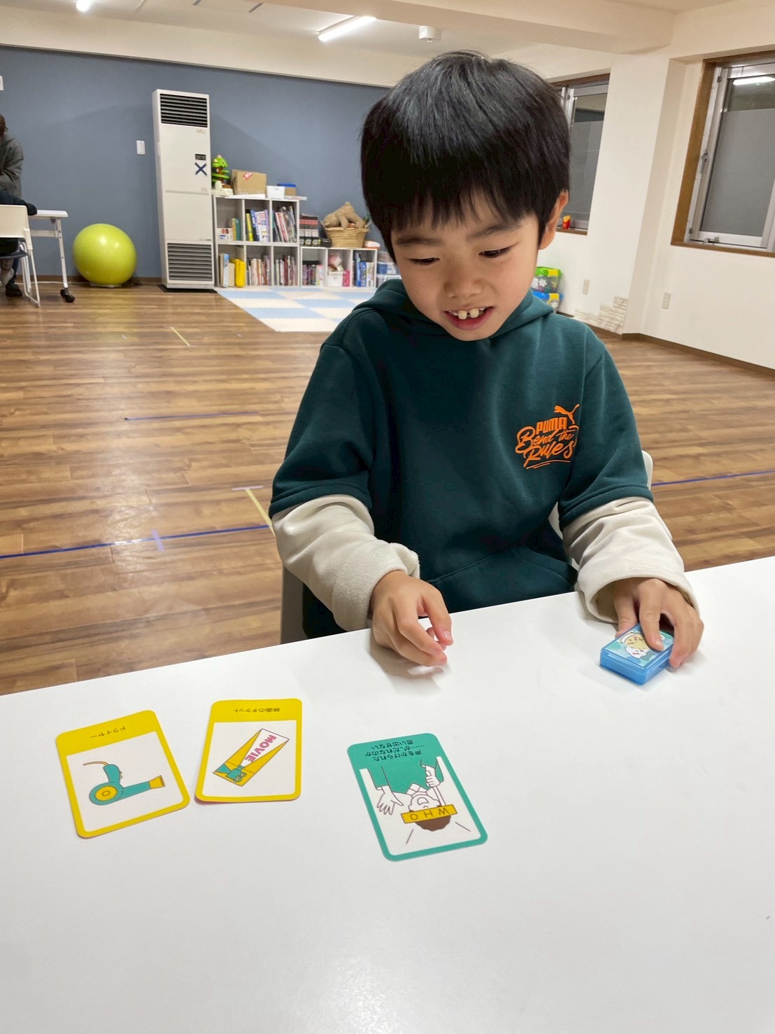 今週は、カードゲームやマッチング、指先練習などを各グループに分かれて行いました!