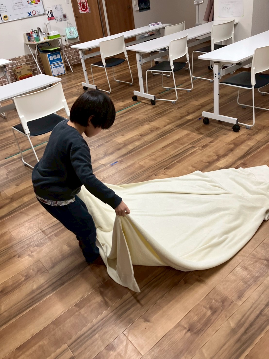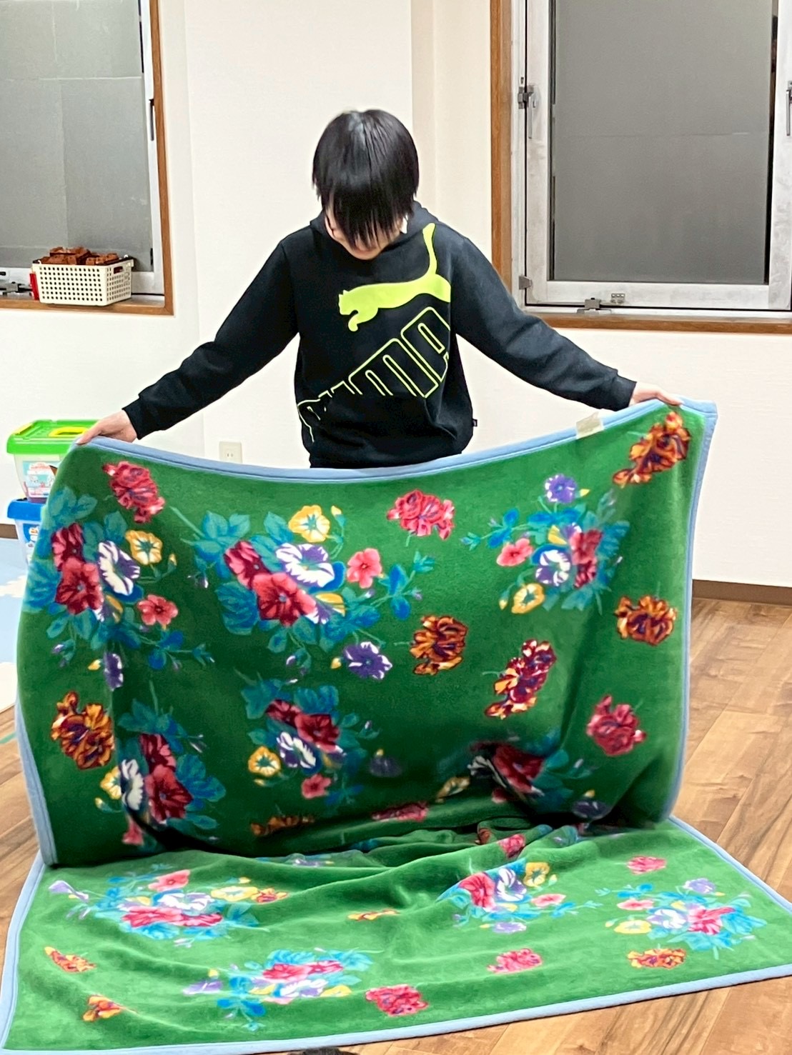 毛布など大きいものも半分→半分と折りたたんでいくことができていました!