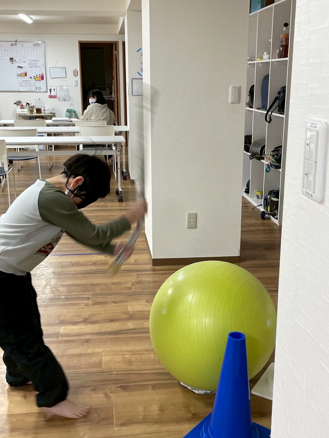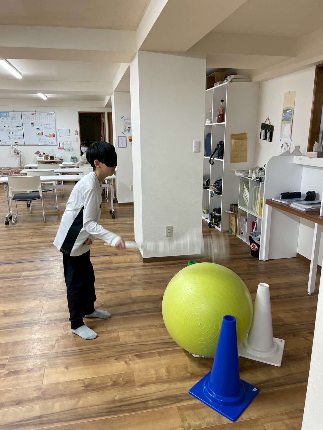 今週は、目隠しバランスボールたたきをしました!