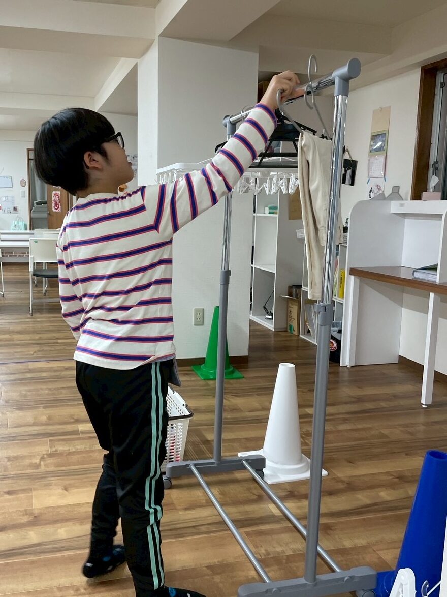 お洗濯の後の事を自分たちでもできるように練習していきました👚