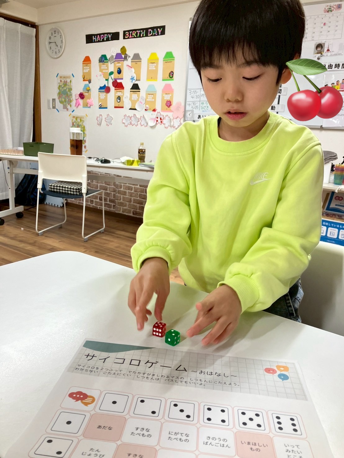 お話の順番を守るサイコロトークでは、順番を守る+トークの内容もテーマに沿って発表することができていました!