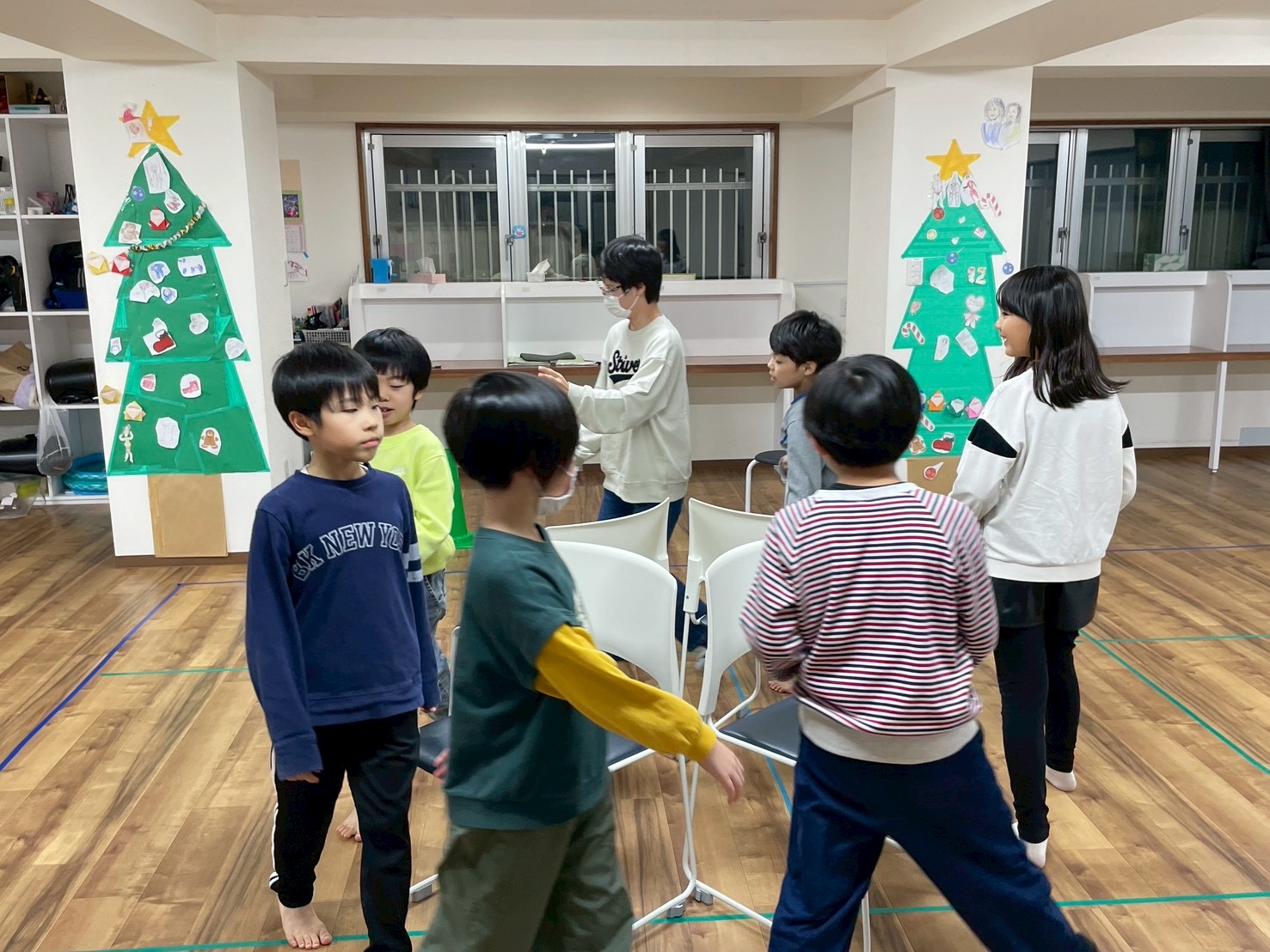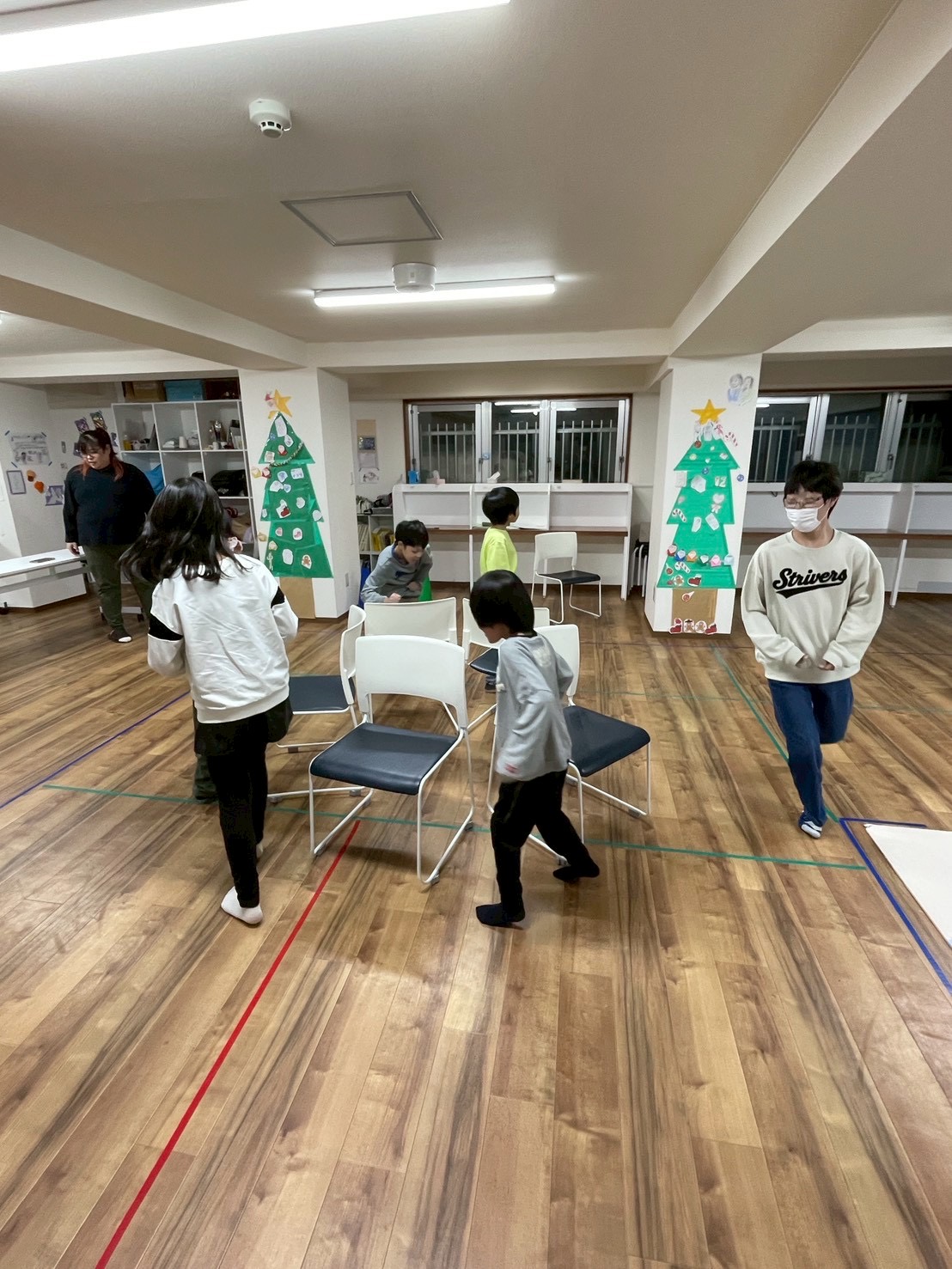 クリスマスソングを流しながら椅子取りゲームを行いました!