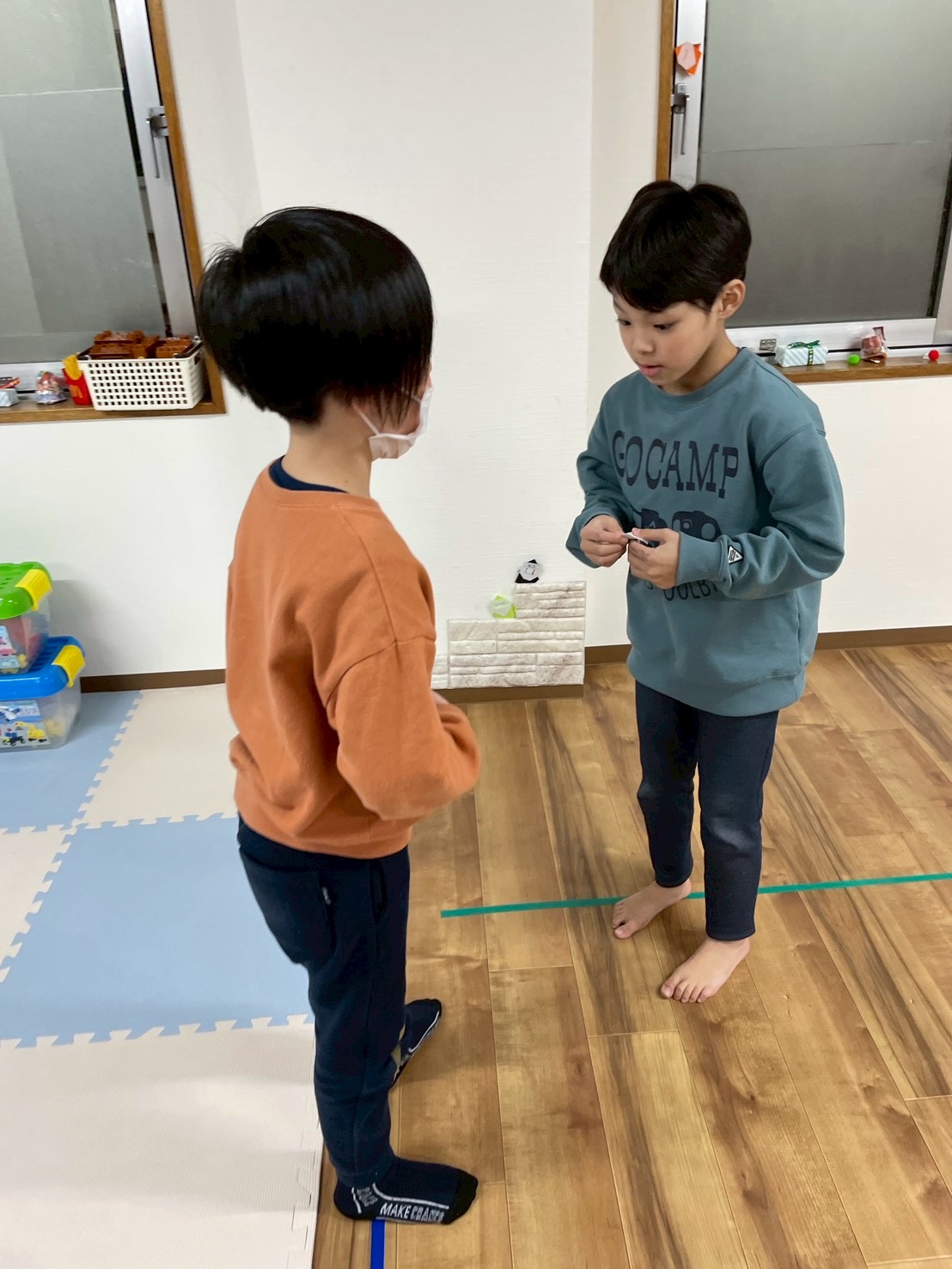 自分の動物を伝えて、相手の動物が何かを読み取って、更に順番を考えてと頭と体をたくさん使っています!