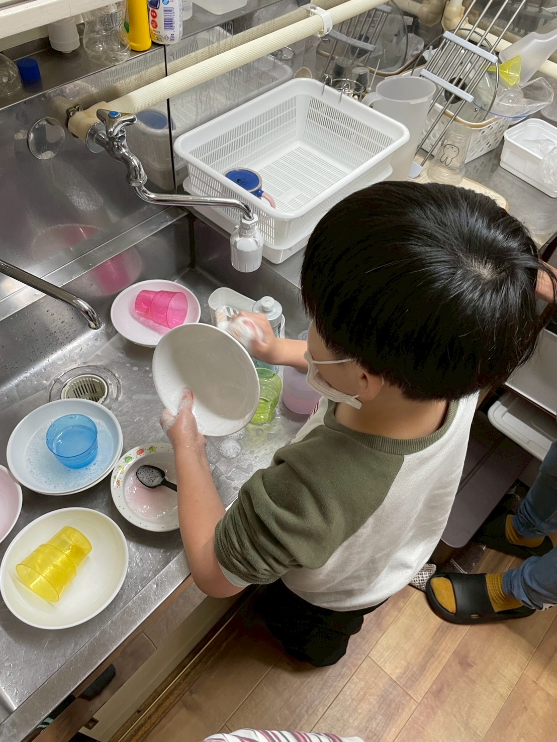 おやつを食べる時に使ったお皿やコップを、自分たちで洗いました!