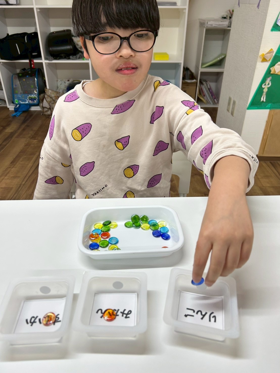 色やひらがなのマッチングなどを行っています!