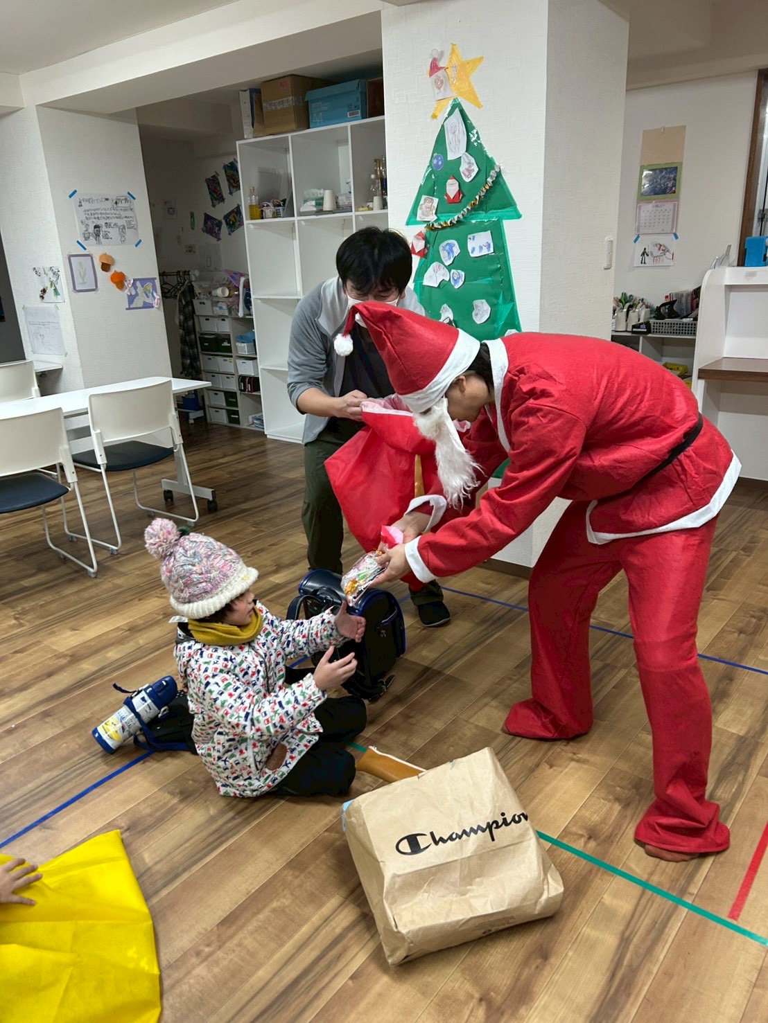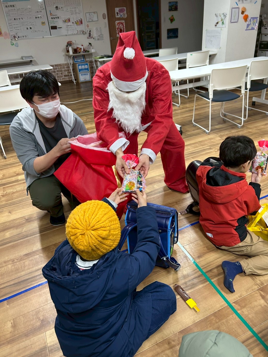 そして、帰りのあいさつのときには、たまみずきサンタが登場し、子どもたちにお菓子を配っています!🎅