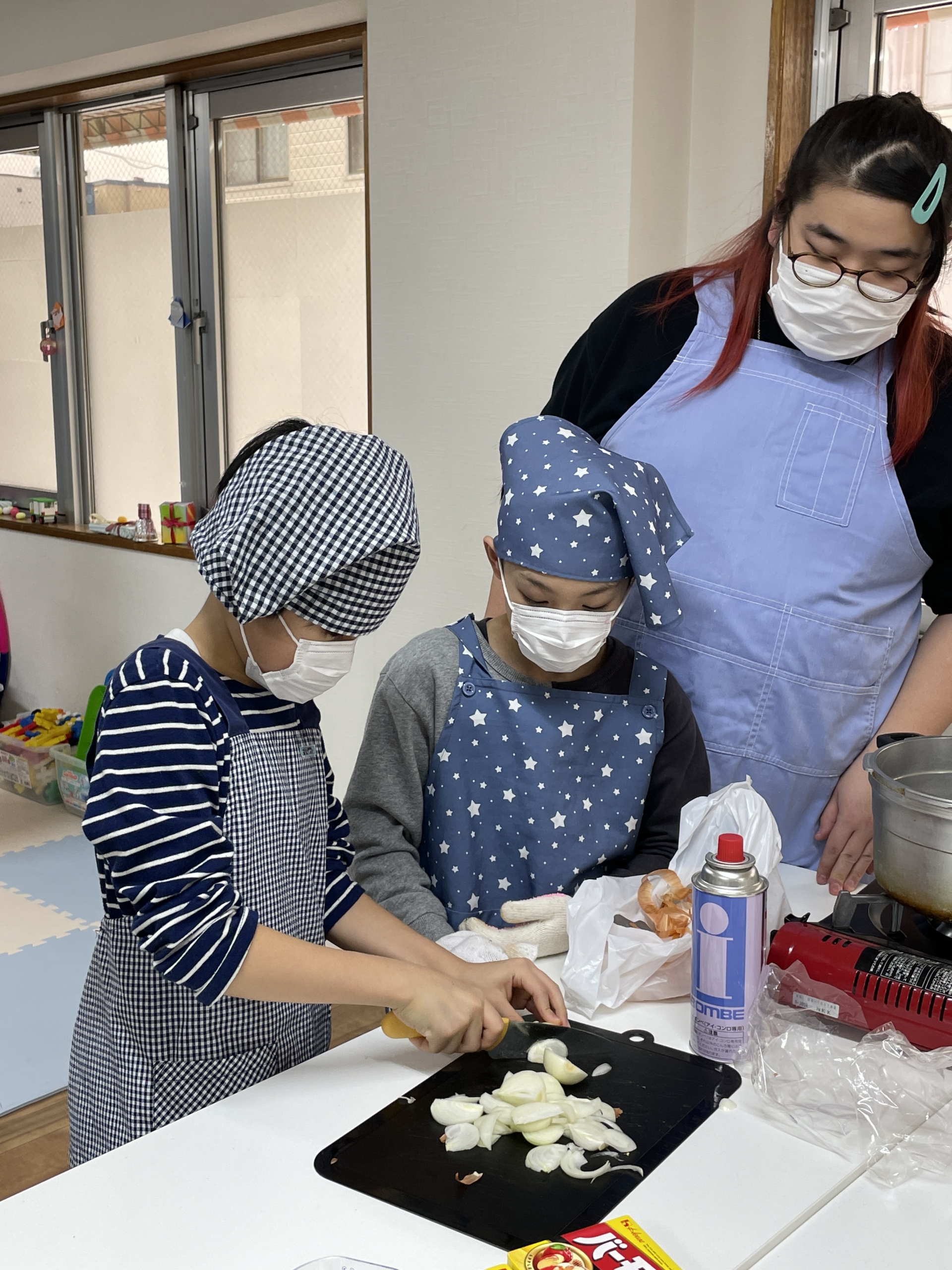 冬休み初日は、一日活動で、以前、子どもたちからアンケートを取った時に惜しくも票差で敗れた『カレーライス』を子どもたちと職員で作りました🍛