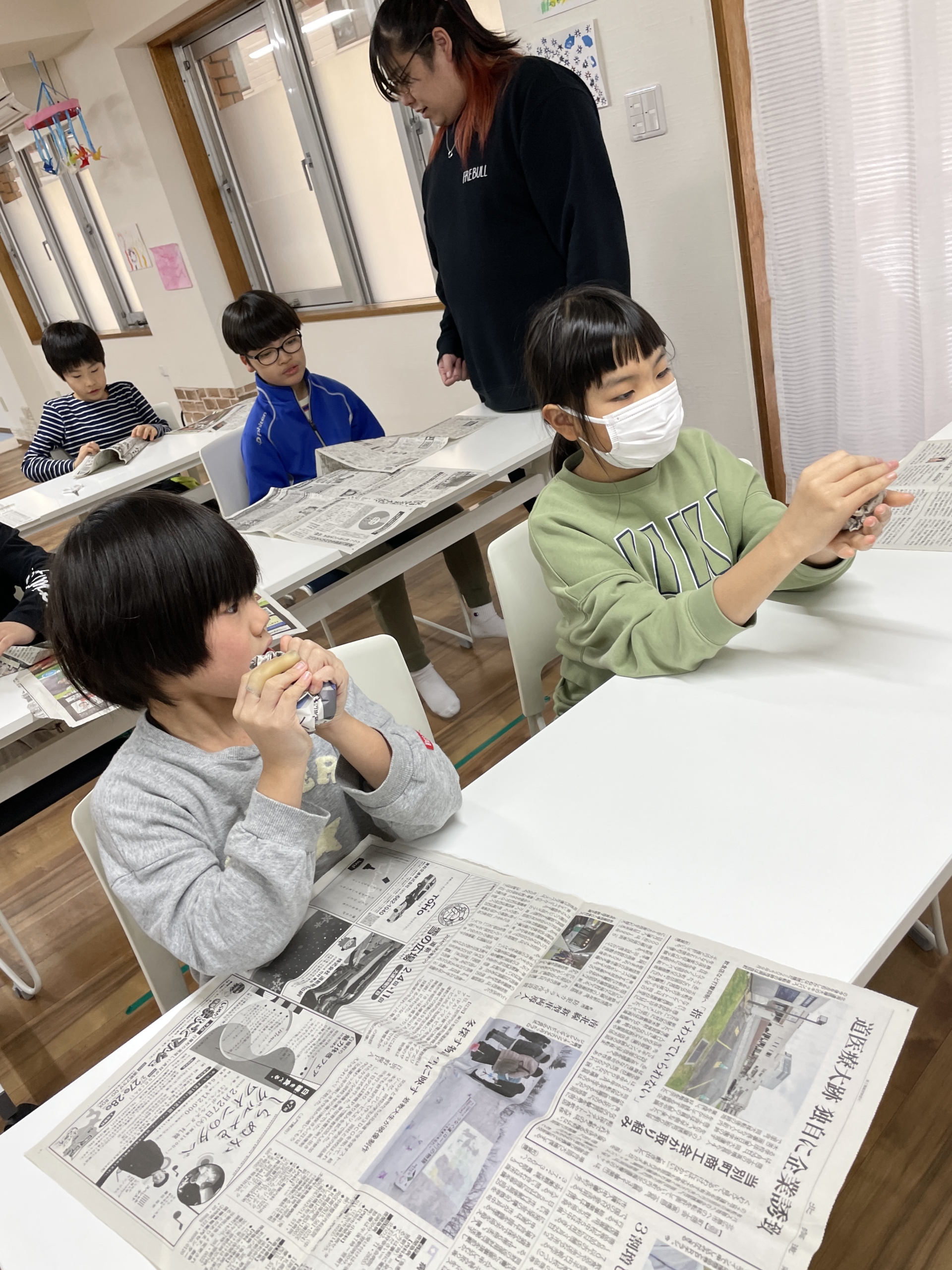 1つ目の活動は、みんなで【新聞紙お手玉】を作って遊びました!