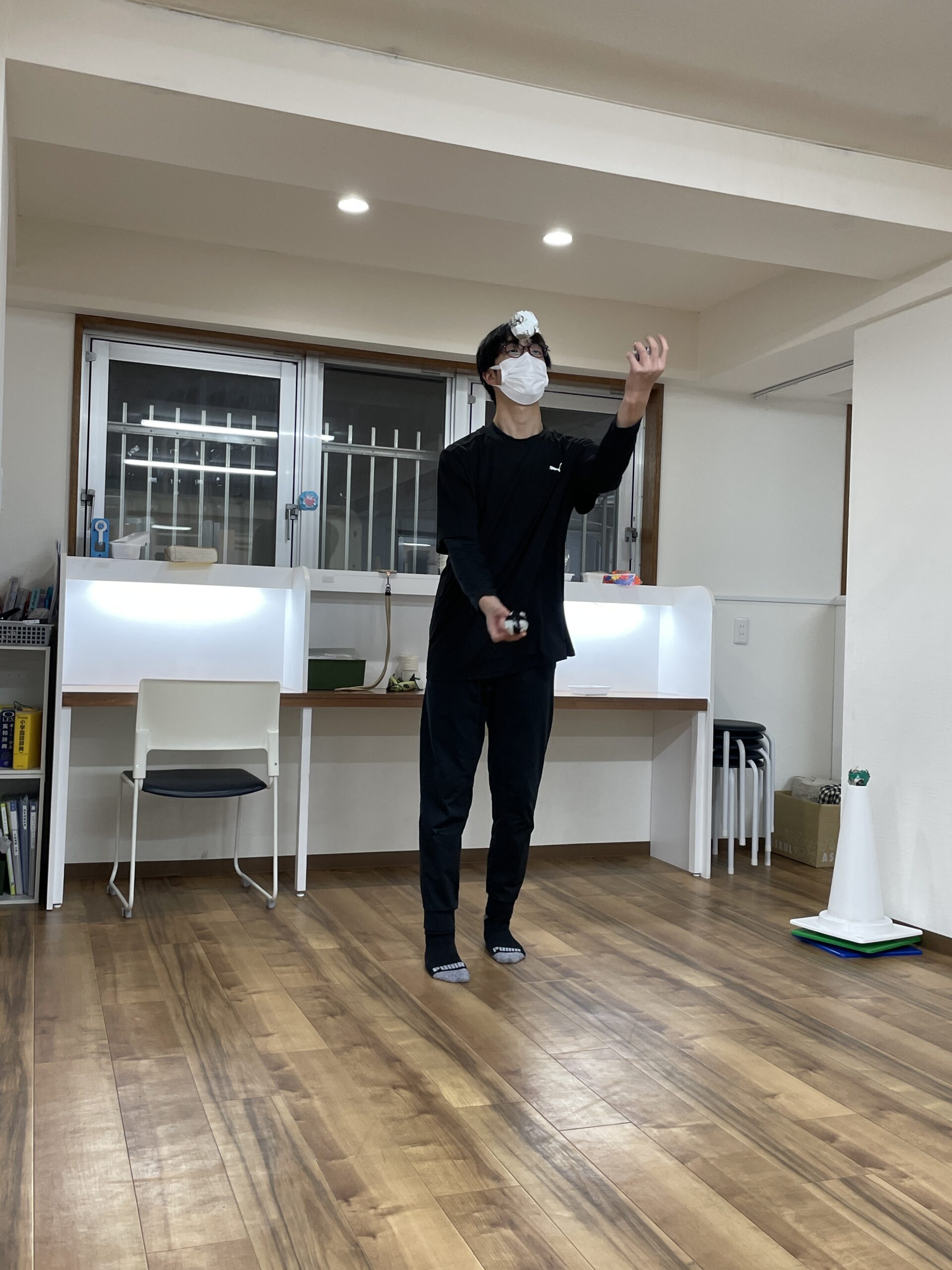 まずは1つのお手玉のからの練習をしました。