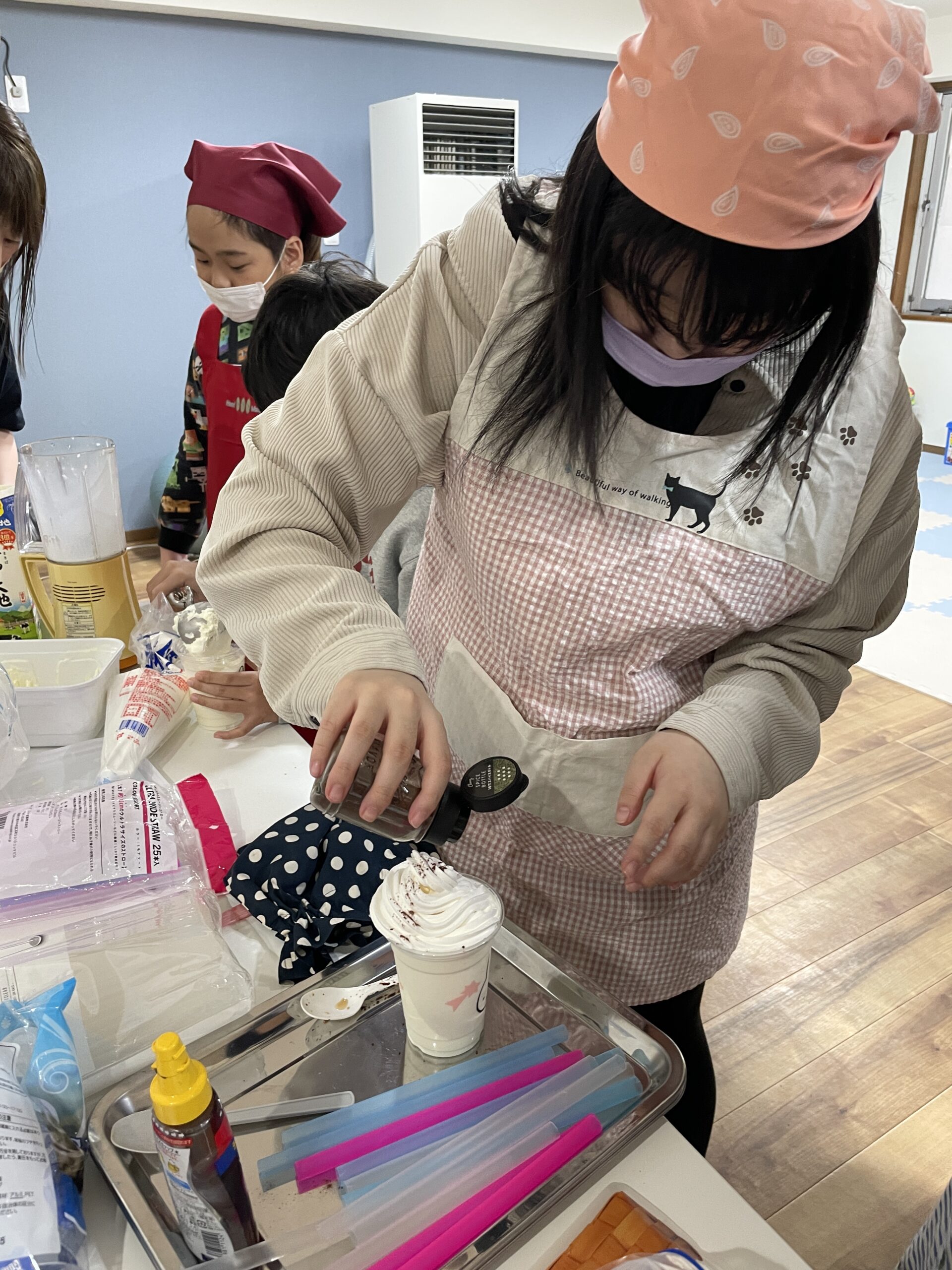 学習の時間に冬休みの宿題などに取り組んだ後に、映画を見ながら食べるおやつを作りました!