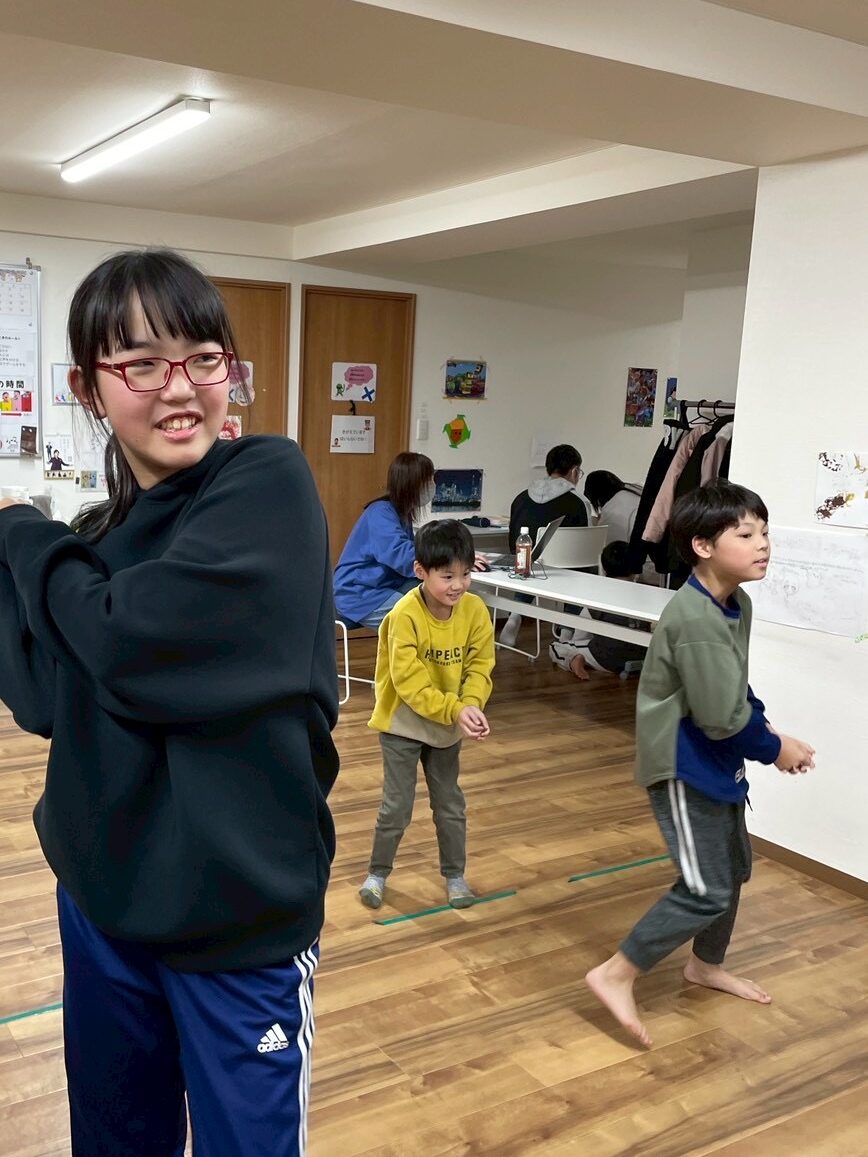 逃げる側は、鬼の掛け声に合わせて、その動きの真似をします。