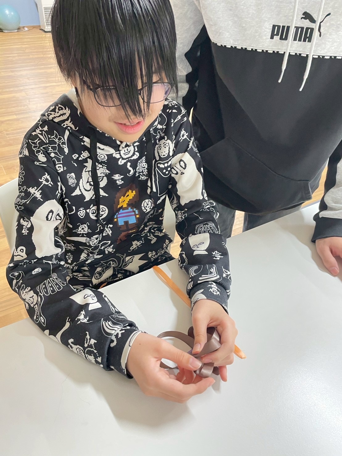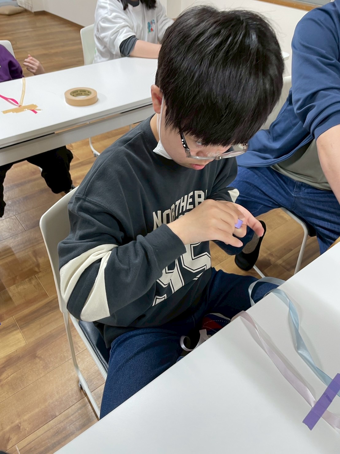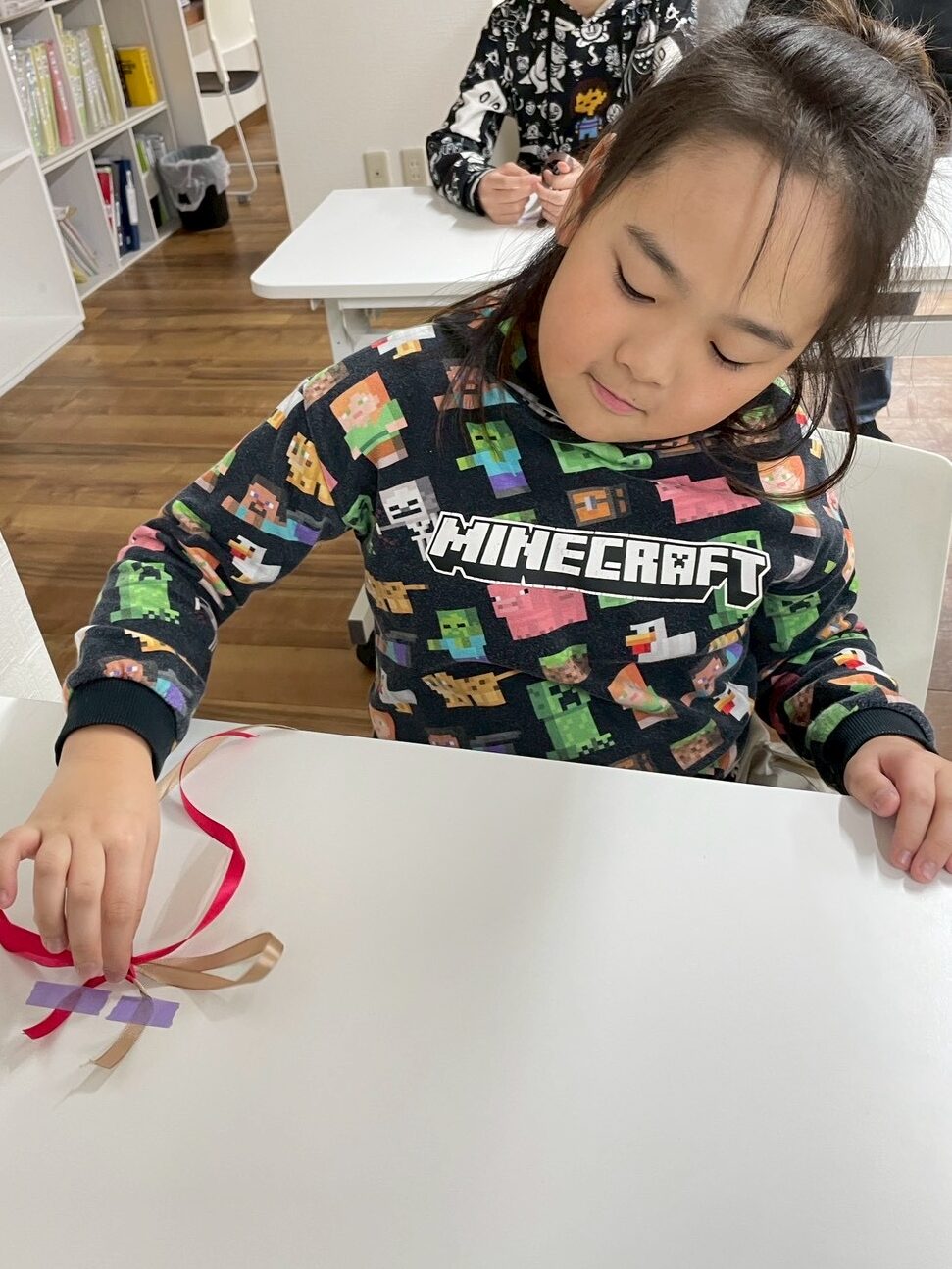 ちょうちょ結びは、いろいろな結び方があるので、それぞれのやりやすい方法で結びました🎀