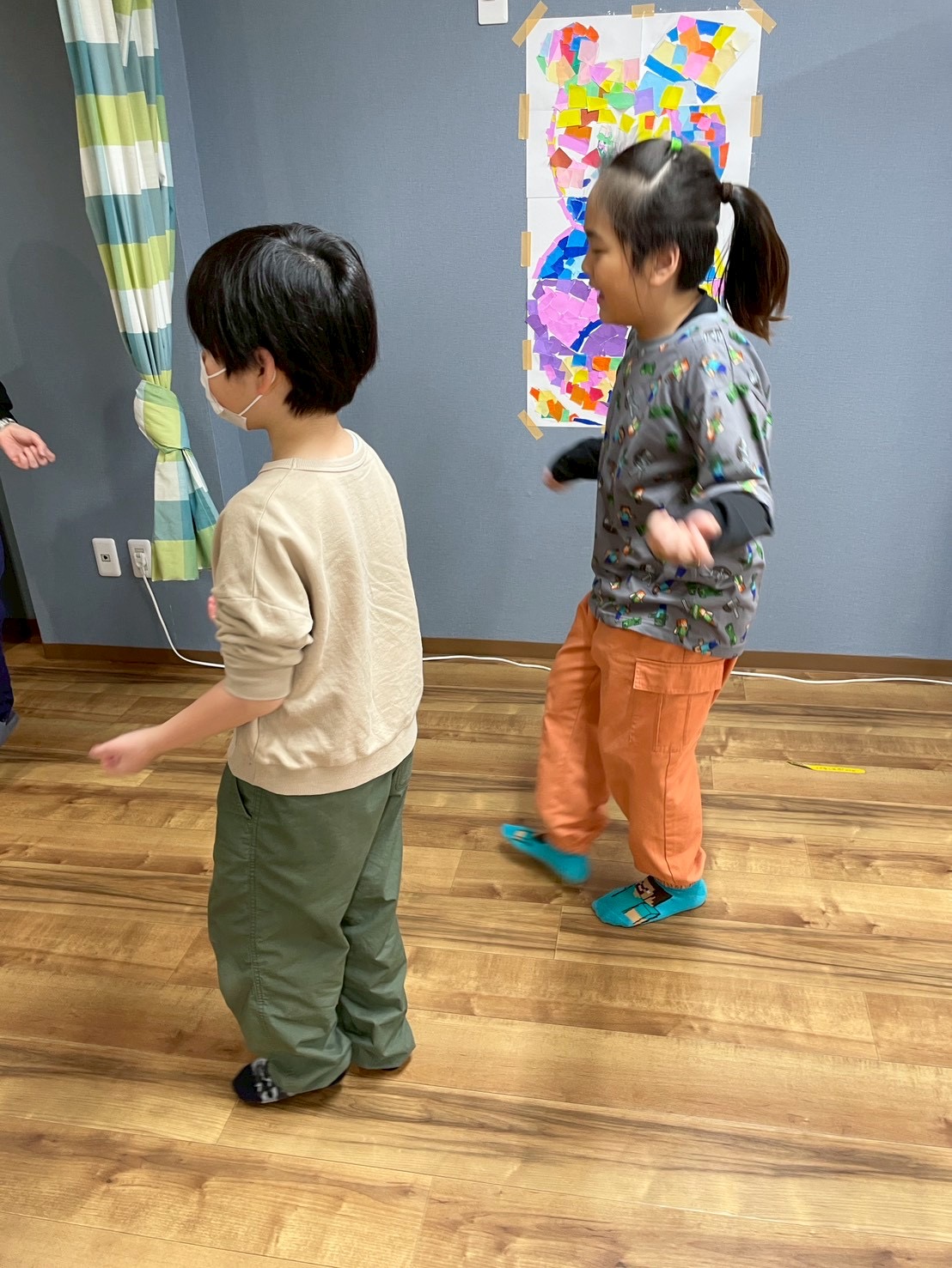 ペアを決める為に動く時も、お相撲さんのすり足のように、しゃがんで進んでもらいました!