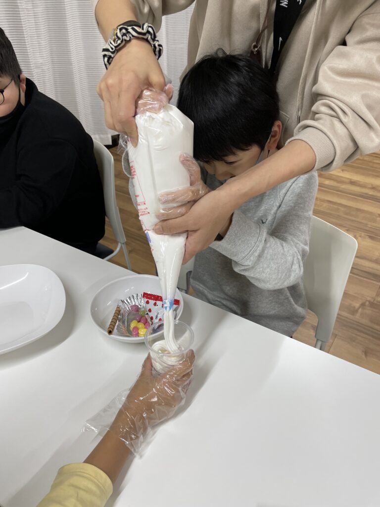 それぞれトッピングをしていき、思い思いのパフェを作りました!
