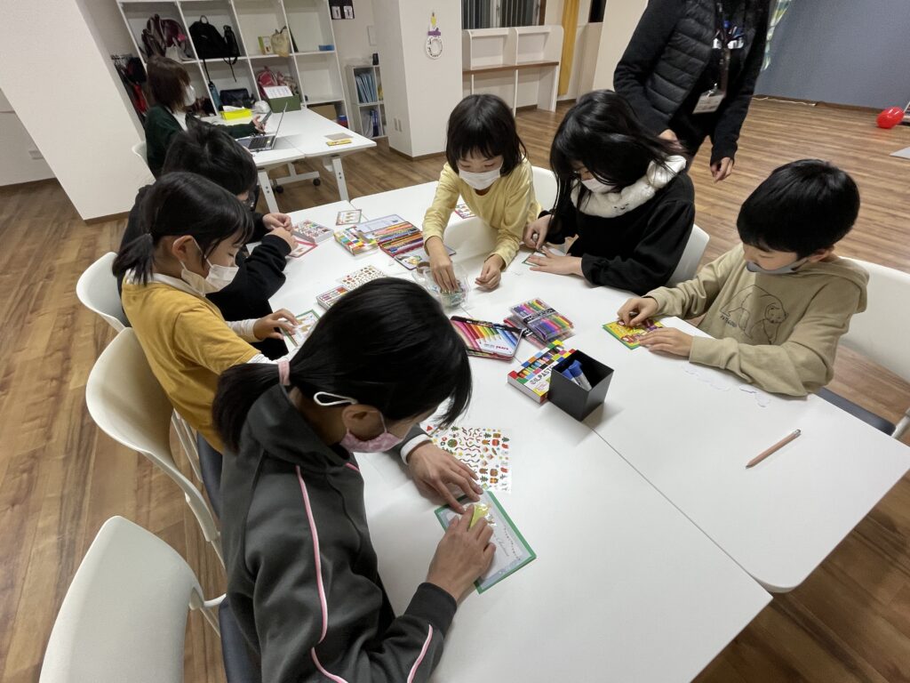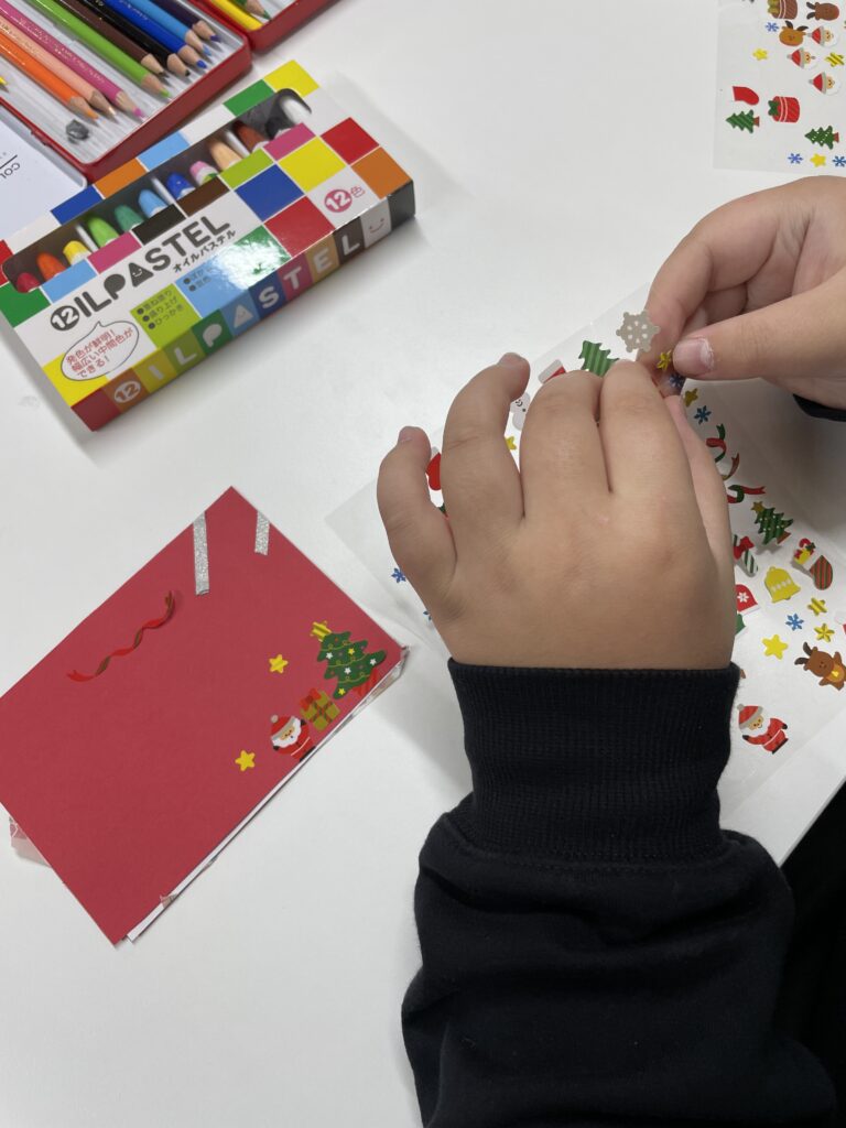 話し合いのあとは、パーティーでみんなで交換するクリスマスカードを作りました!